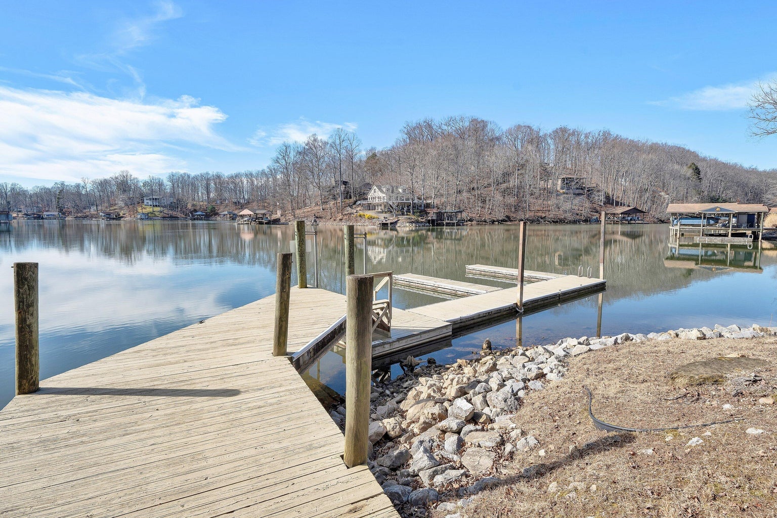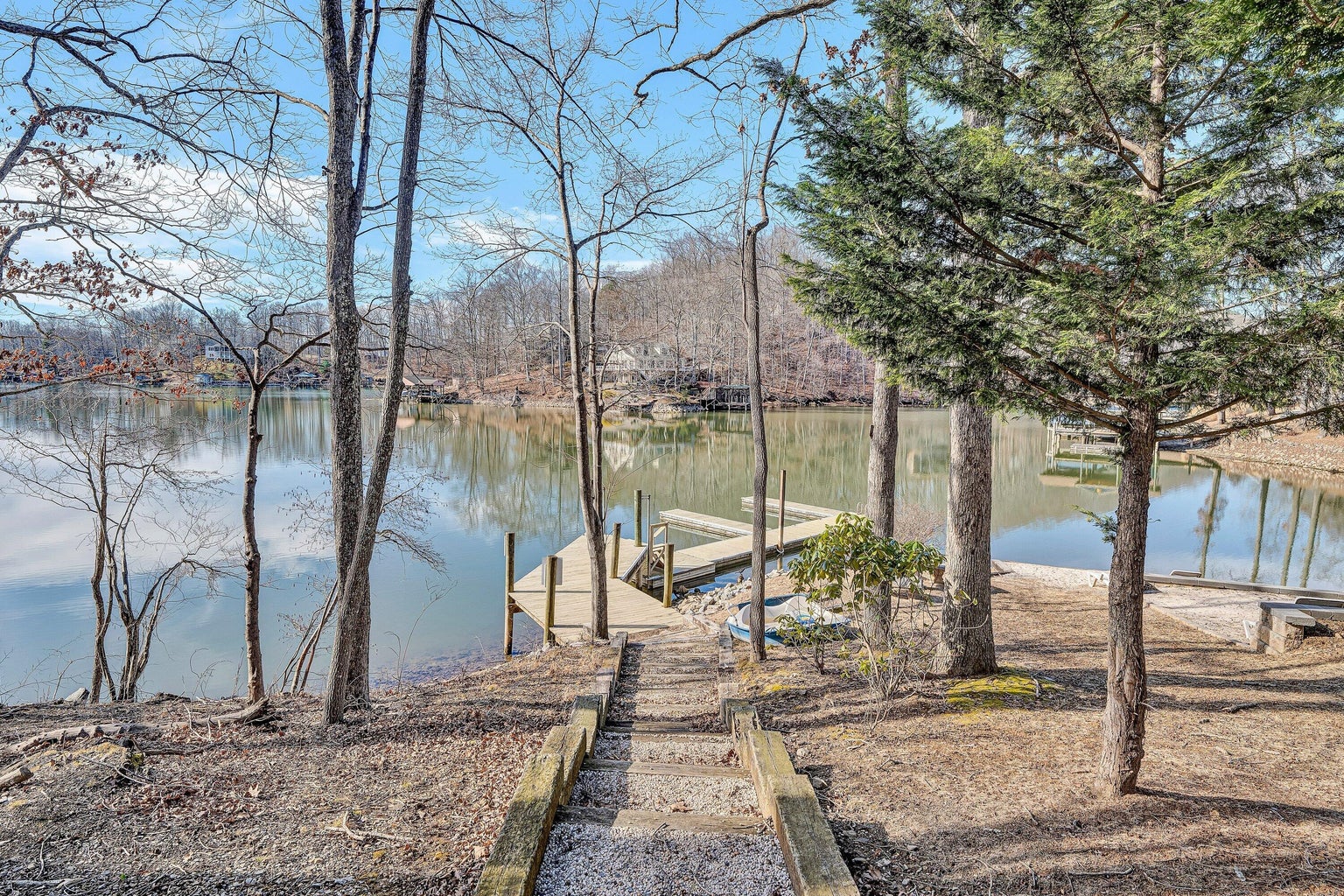 Beautiful Colonial home located in a desirable lake-access community on Smith Mountain Lake, VA. Freshly painted throughout, this home offers 3 bedrooms and 2.5 baths, plus a full unfinished basement already plumbed for an additional bathroom—perfect for future expansion. The spacious living room features a propane fireplace and opens to a brand-new deck overlooking a private, wooded setting. Additional highlights include formal dining, & entry-level laundry, The community offers exceptional amenities, including a boat launch, beach with picnic pavilion and day docks, tennis and pickleball courts, playground, boat and trailer storage, and a clubhouse with racquetball, fitness center, saunas, library, kitchen, and more. Prime location with convenient access to area amenities by land & lake.