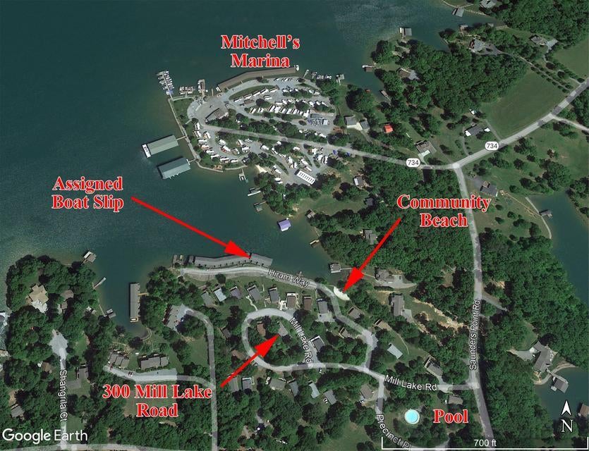 Fantastic lake access opportunity at Smith Mountain Lake offering exceptional water access and an impressive list of upgrades. Located in a desirable low-maintenance community, this beautifully updated home includes a covered boat slip (#24) with hoist and dock storage room. Enjoy lake views from the spacious lakeside deck and walk or golf cart to community amenities including pool, sandy beach, swim dock, fire pit area and day dock. Decorated as 3 bedrooms (2-bedroom septic) with 2 full baths, the home features single-level living, open kitchen, dining and living areas, A fireplace, LVP and tile flooring, and double sliders leading to the deck. Being sold turn-key with all new furniture, appliances, flooring and lighting. Located across from Mitchell’s Point Marina Marker C-2A.