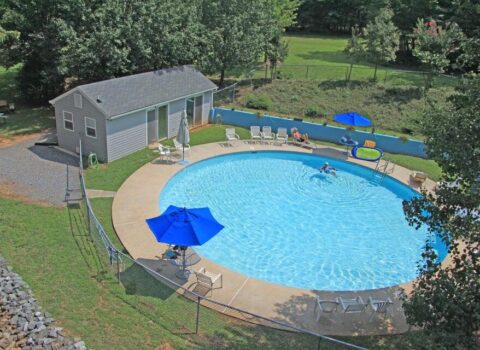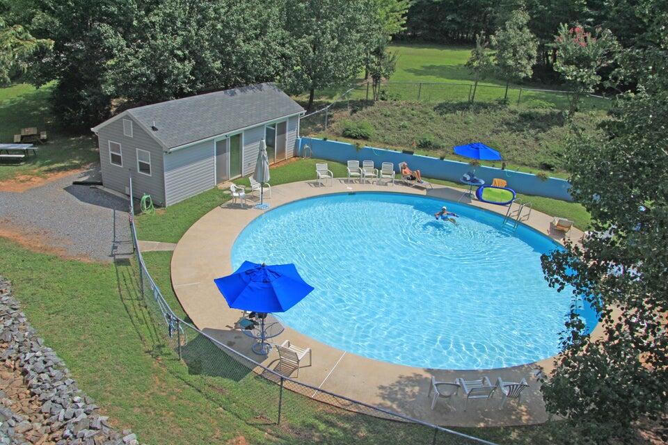” Swimming pool with pool house and restrooms