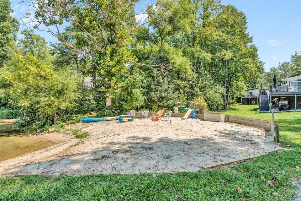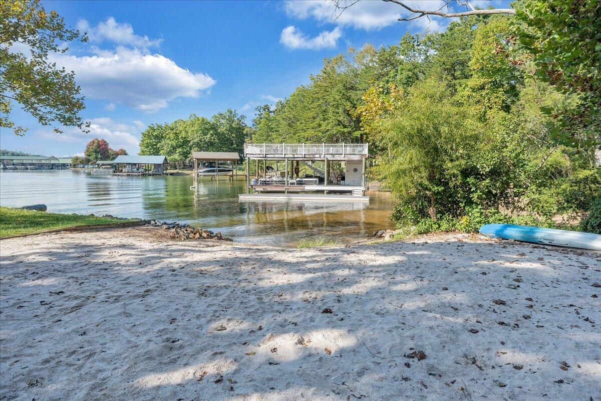 The property includes a covered boat slip (#24) equipped with a hoist and dock storage room. The community features fantastic amenities including a swimming pool, sandy beach, swim dock, day dock, fire pit gathering area and public water service.