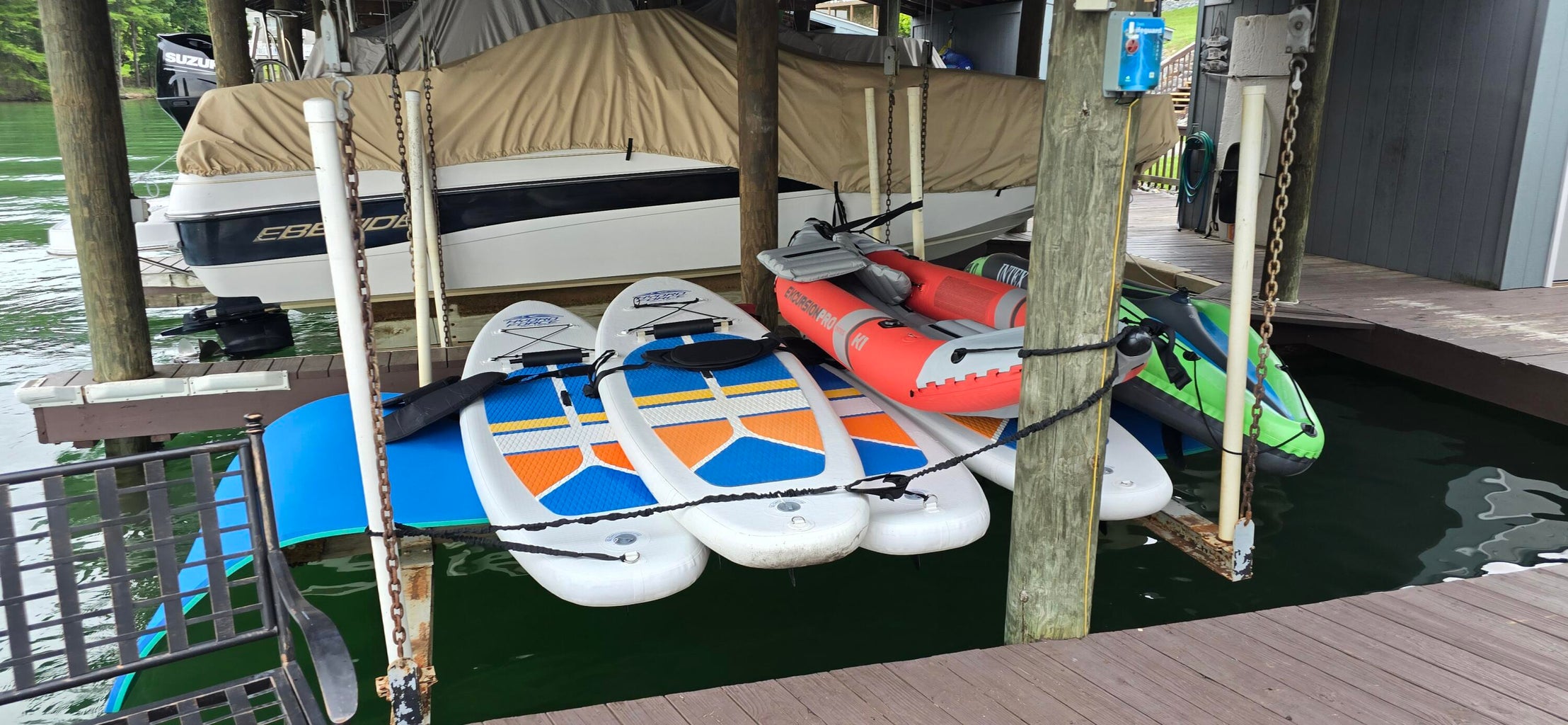 The slip also includes access to a storage shed stocked with lake toys and floats.